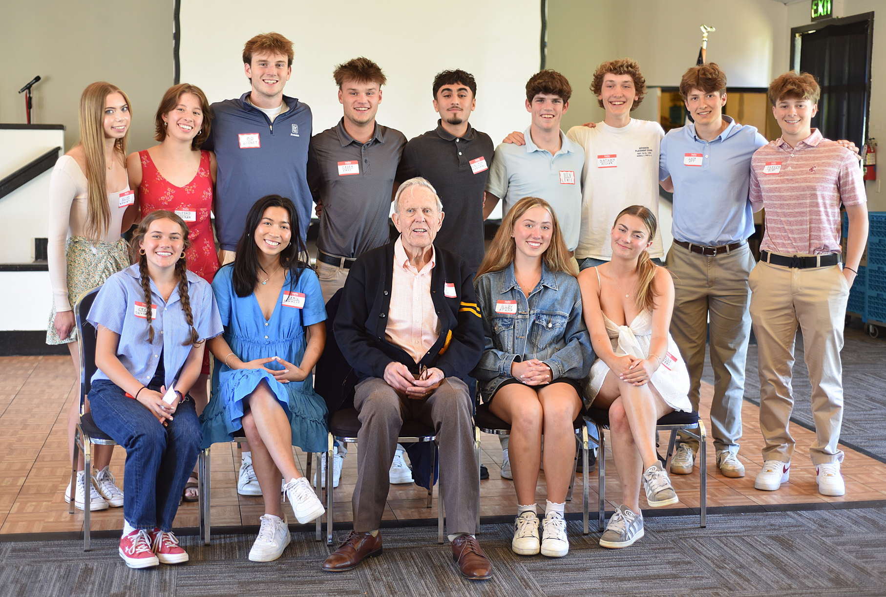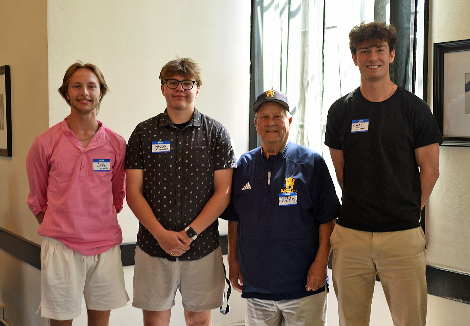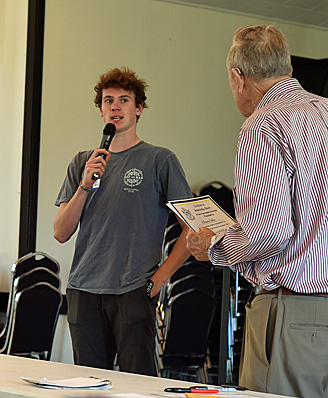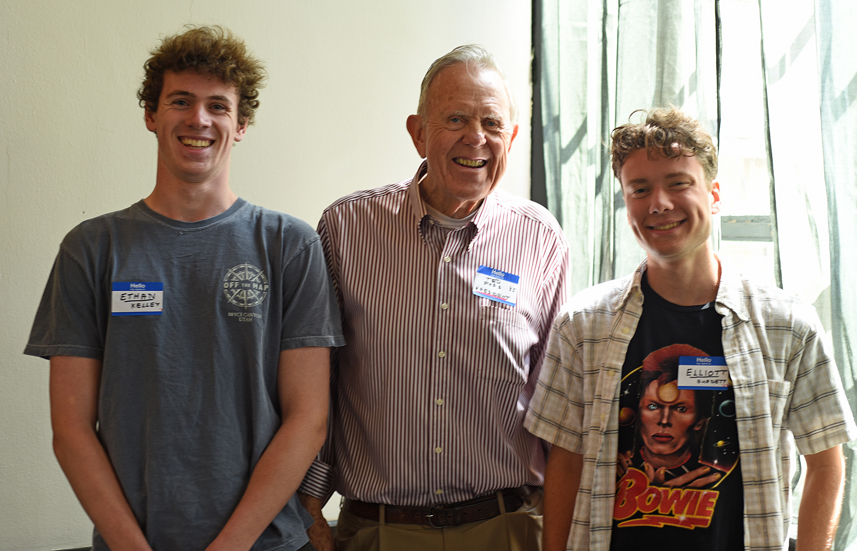 Runners Ethan Kelley and Elliott Burdett with club president Ted