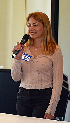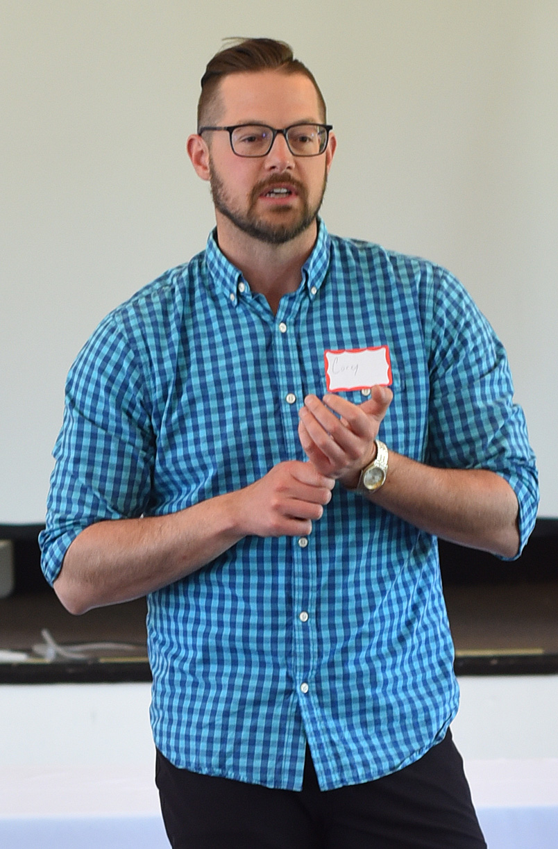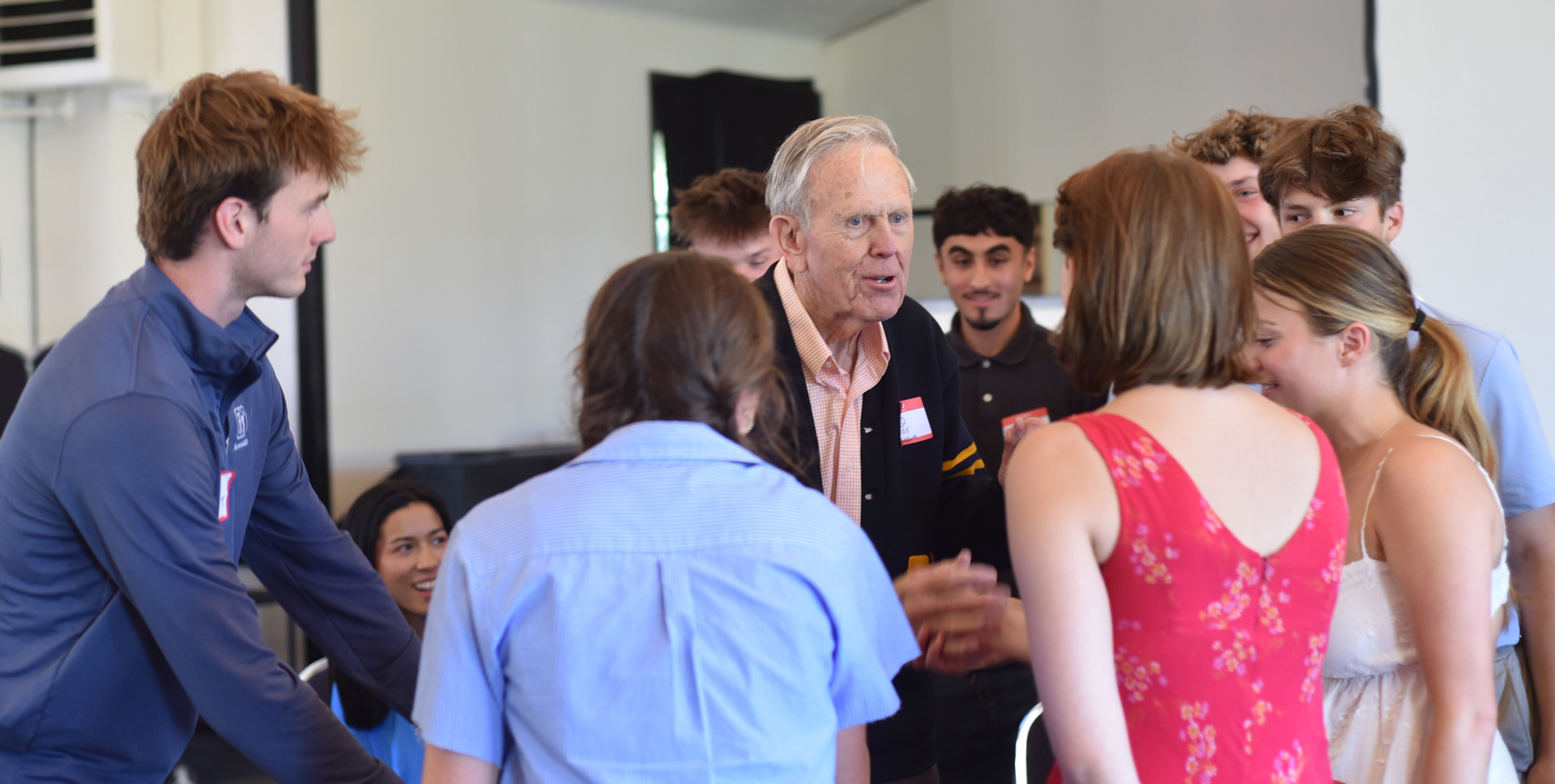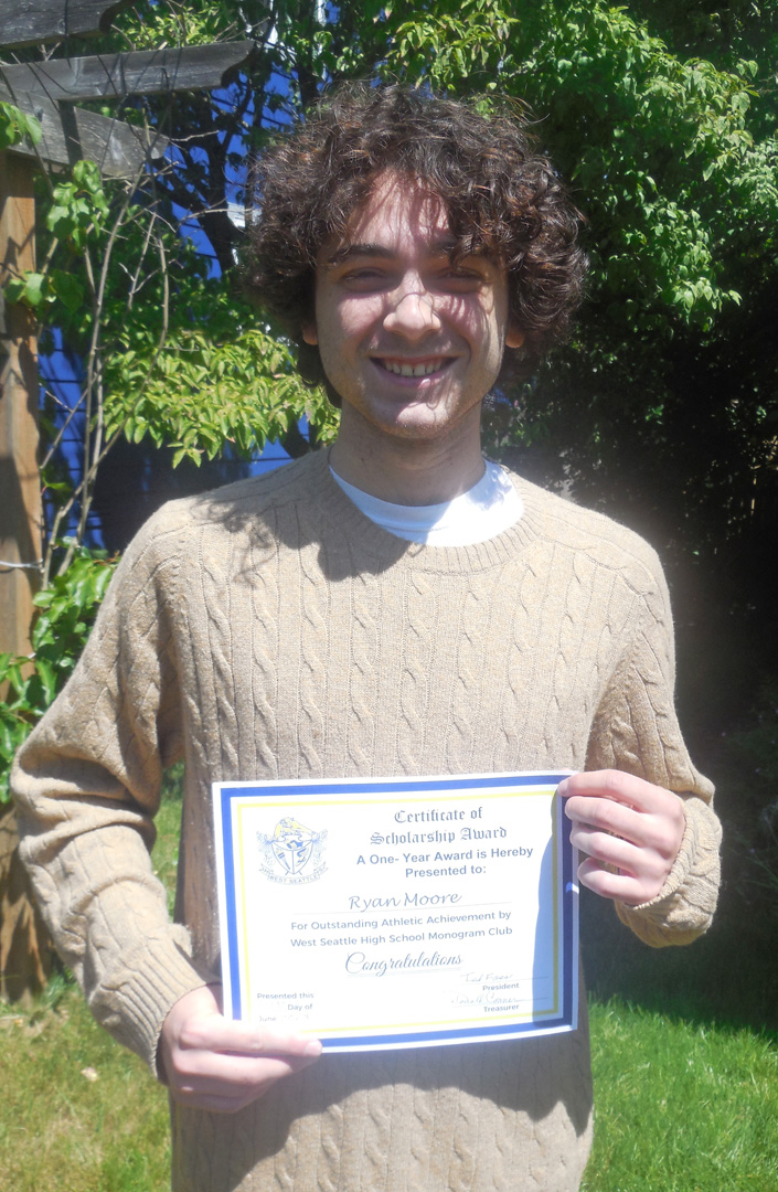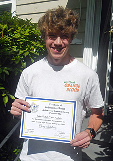 Runners Ethan Kelley and Elliott Burdett with club president Ted